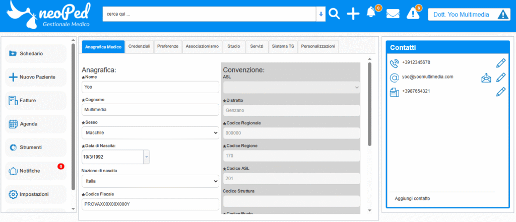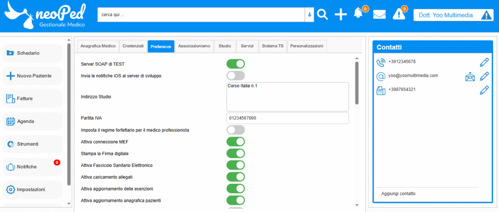 Il gestionale medico neoPed permette all’utente di controllare, verificare e personalizzare diverse funzioni o informazioni che riguardano il professionista.